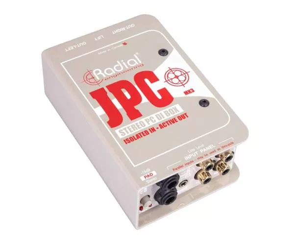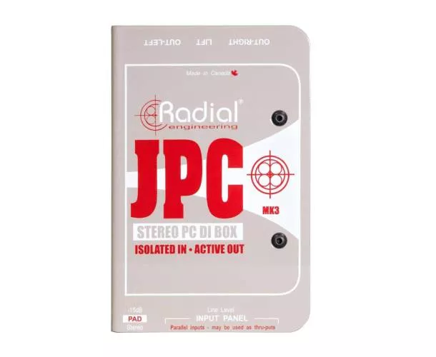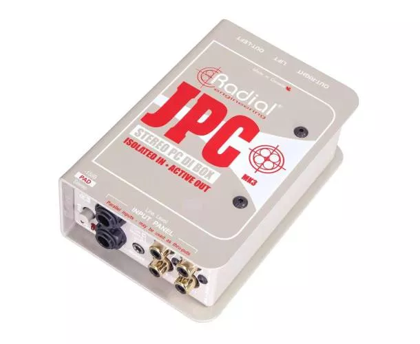La Radial JPC est une DI stéréo conçue pour interfacer des cartes sons ou des appareils électroniques grand public aux systèmes de sonorisation professionnels. Elle propose une connectique variée avec des entrées RCA, jack 3.5mm et 6.35mm. Chaque entrée peut également servir de sortie thru pour splitter facilement le signal. Son design hybride actif/passif combine le meilleur des deux mondes, tandis que les transformateurs sur les entrées garantissent une parfaite isolation contre les buzz et hums causés par les boucles de masse. La JPC utilise un circuit actif alimenté par le 48V de l'alimentation fantôme, gérant la conversion d'impédance et la symétrisation du signal. Compte tenu de sa compacité, de sa robustesse et de sa flexibilité, la JPC est idéale pour interfacer des équipements audio/vidéo sur scène ou en studio, tout en offrant une excellente qualité sonore.