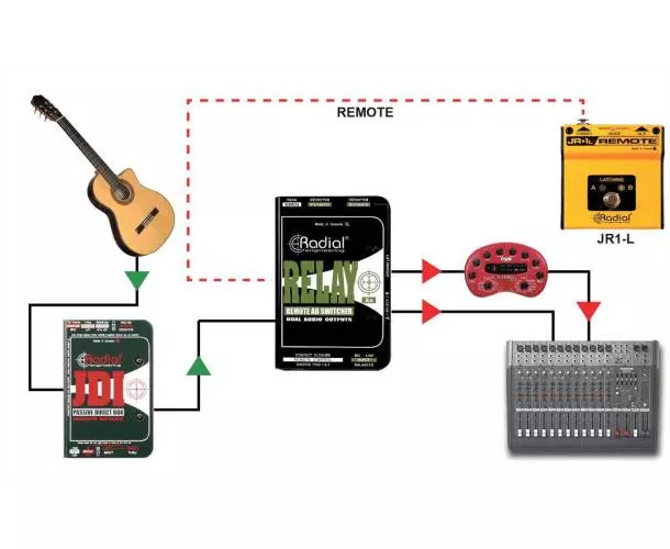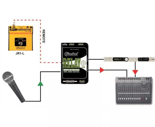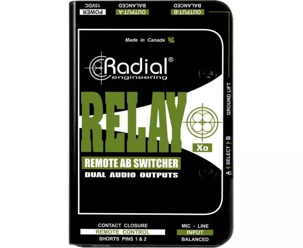Le Relay Xo de Radial est un commutateur audio puissant et facile à utiliser, doté d'une entrée et de deux sorties symétriques. Il permet d'acheminer la sortie d'un microphone vers deux entrées audio différenciées, facilitant ainsi la gestion du micro pour un chanteur, que ce soit pour le système de sonorisation principal ou pour les retours de scène. Cela est particulièrement important pour les artistes utilisant des retours intra-auriculaires. Le Relay Xo peut également envoyer la sortie d'un microphone sur deux canaux d'une console de mixage en concert. Le premier canal peut rester sans traitement pour le public, tandis que le second peut inclure une réverbération et un écho, permettant à l'artiste de contrôler les effets et d'améliorer sa performance. Il est équipé d'une entrée XLR symétrique et de deux sorties XLR symétriques, avec un trajet de signal audio entièrement passif, sans transformateur ni buffer électronique, évitant ainsi toute distorsion ou coloration du son. Le Relay Xo utilise des relais de qualité militaire avec des contacts en or pour la commutation. Il est adapté aux signaux de niveau micro ou ligne et peut être commuté via un interrupteur sur le boîtier ou par commande à distance, à l'aide des connecteurs XLR combo et jack 6,35 mm, avec soit la pédale Radial JR1-L (à verrouillage) soit JR1-M (momentanée). De multiples Relay Xo peuvent être utilisés simultanément grâce à un lien.