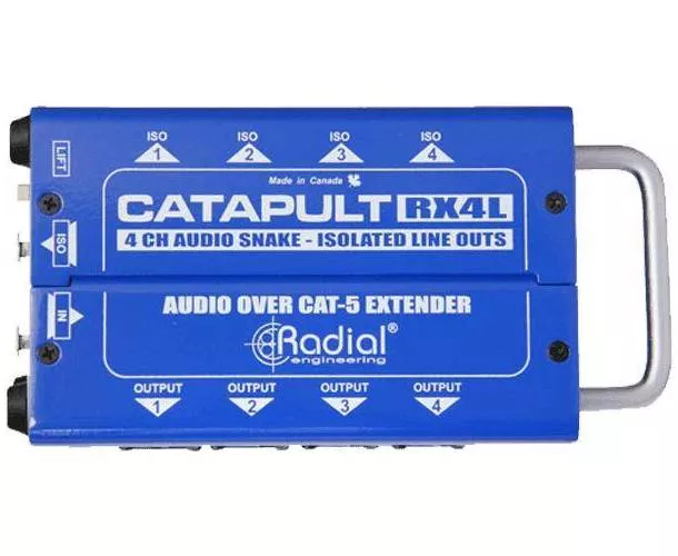 Les Catapult sont des séparateurs audio modulaires 4 canaux, comprenant un module émetteur et récepteur transmettant un signal analogique ou numérique (AES) via un câble blindé CAT5. Chaque module émetteur dispose de 4 entrées et 4 sorties XLR, tandis que le module récepteur offre deux séries de 4 sorties XLR. Ce système assure une flexibilité exceptionnelle grâce aux 6 modules équipés de sorties XLR parallèles et de sorties isolées de niveau micro ou ligne. Chaque module est également doté d'un interrupteur de masse pour éliminer les interférences. L'association des différents modules offre une utilisation très flexible, surpassant les multipaires habituelles, tout en bénéficiant de la simplicité d'une transmission par câble réseau.