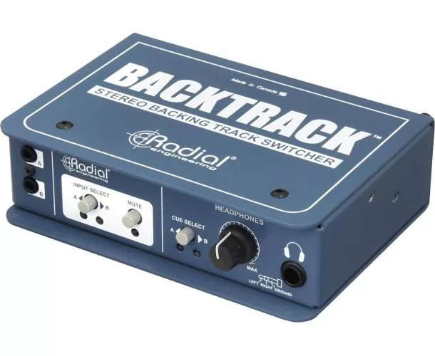 Le Backtrack est un mélangeur audio stéréo compact, parfait pour les groupes utilisant des pistes d'accompagnement sur scène ou alternant entre différentes sources audio stéréo.