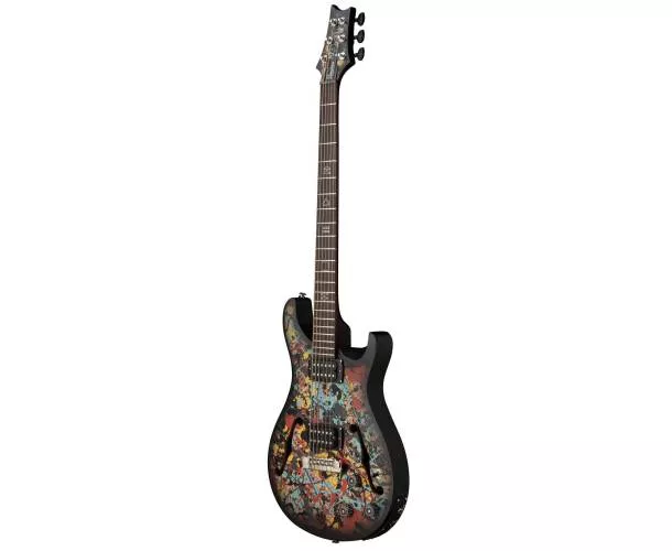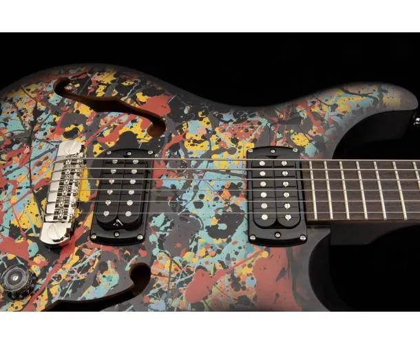 Conçu en collaboration avec Ed Sheeran, ce modèle SE Hollowbody I Piezo Baritone allie la passion de Sheeran pour la composition musicale à son amour pour la peinture. Limité à 1 000 exemplaires, le PRS SE « Cosmic Splash » arbore une finition reprenant le motif de l'une des peintures de Sheeran, intitulée « Cosmic Carpark ». Les incrustations de touche font référence à sa prochaine série d'albums, chacun portant le nom d'un symbole multimédia : Play, Pause, Rewind, Fast-Forward et Stop. Le symbole Play est également présent sur le cache du truss rod.