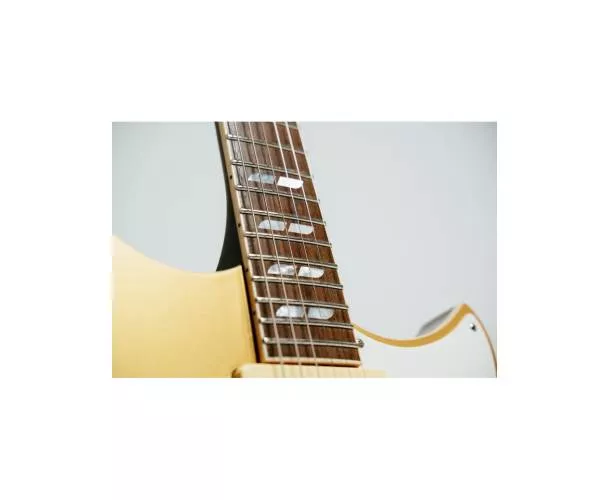 Avec sa finition Honey Gold, ses boutons de potentiomètre ambrés et ses incrustations raffinées, la RS02CB transpose l'âme de la guitare custom de Chris dans un modèle signature accessible.