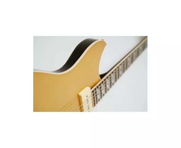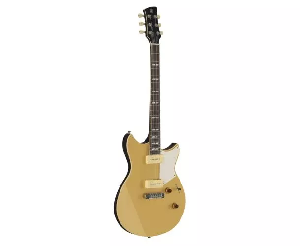 La RS02CB est une réplique de la Revstar personnalisée de Chris Buck : finition Honey Gold, boutons de potentiomètre ambrés et incrustations de touche élégantes.