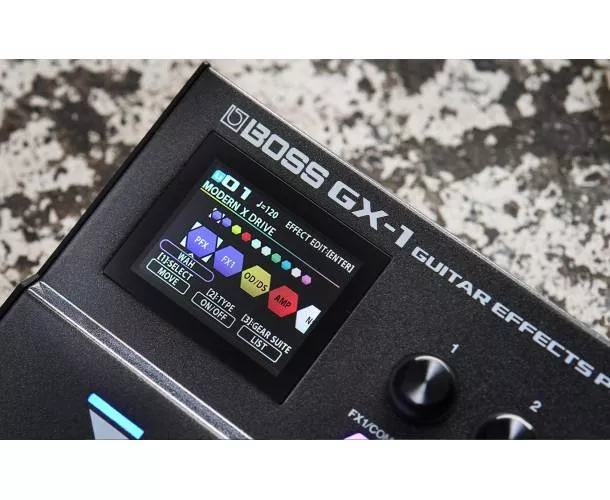 Le GX-1 propose des sons et fonctions de niveau professionnel dans un format ultra portable pour l'entraînement, l'enregistrement et les concerts. Ses algorithmes d'amplis et d'effets GX authentiques vous procurent une inspiration infinie, tandis que l'afficheur couleur en haute résolution, les boutons d'effet intuitifs et les outils Gear Suite accélèrent le processus de création sonore. Robuste, puissant et remarquablement compact, le GX-1 est rempli de sons inspirants pour tous les guitaristes, des débutants aux pros des tournées qui recherchent une solution tout-en-un transportable, sans faire de compromis en matière de sons.
