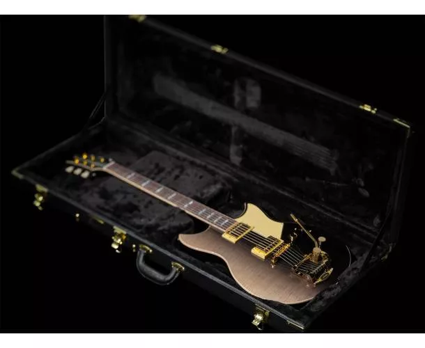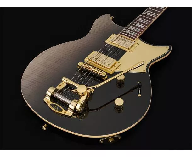 La Revstar RSP20B 60th anniversary est dotée d'une table en érable flammé et d'une finition Noble Black Burst élégante qui lui confèrent une esthétique luxueuse et un caractère unique. Le vibrato Goldo et les mécaniques Gotoh bloquantes offrent une gamme dynamique et