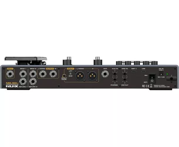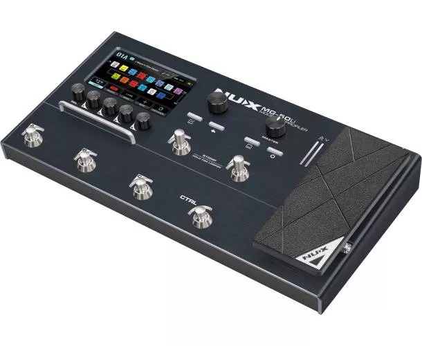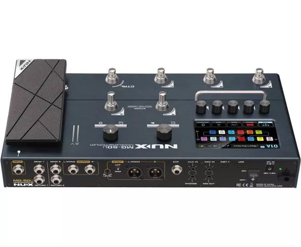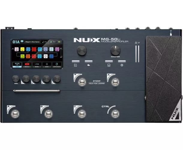 Interface audio USB : Le MG-50Li fonctionne également comme une interface audio USB, simplifiant la configuration et permettant de se concentrer sur le jeu. Les patches peuvent être édités directement sur le panneau avant ou via l’application NUX Audio, avec un écran LCD couleur haute définition pour un réglage précis du son.