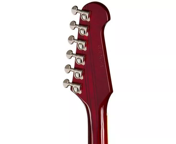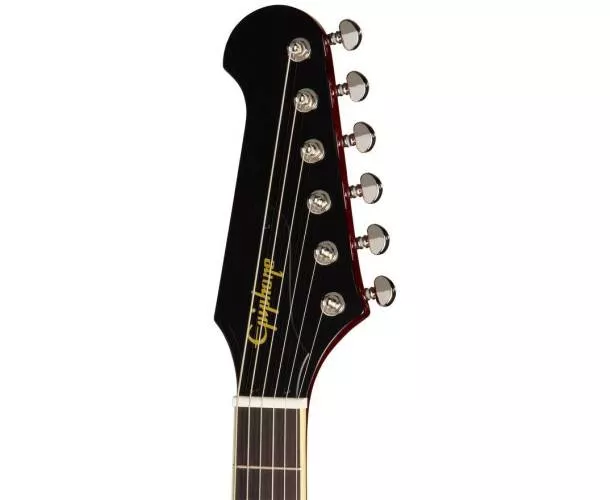La Firebird, inspirée par Gibson, arbore un design inversé du corps et du manche, apparu lors de son introduction en 1963. Conçue par le célèbre designer automobile Ray Dietrich, cette guitare présente une construction en mahogany et noyer en 9 plis, offrant une tonalité riche et chaleureuse ainsi qu'une sustain incroyable. Le manche, avec un profil de forme SlimTaper C, est équipé d'une touche en palissandre avec 22 frettes medium jumbo et d'incrustations en pearloid en forme de trapèze, garantissant un style indéniable et une jouabilité rapide. La Firebird est équipée de micros ProBucker™ FB720 avec des aimants Alnico 2, fabriqués selon les spécifications des micros des années 1960, connectés à des potentiomètres CTS® pour des tonalités brillantes. Contrairement aux mini humbuckers, les micros Firebird, construits différemment, produisent un son unique grâce à leur conception sans pièces polaires. L'Epiphone Firebird dispose d'accastillage premium, y compris un chevalet LockTone™ Tune-O-Matic™ et des mécaniques Grover® Mini Rotomatic, ainsi que d'un sillet Graph Tech® pour une accord stable. Un pickguard présente le logo emblématique de Firebird en relief rouge. Que vous jouiez sur scène ou dans votre garage, la Firebird est une véritable icône du rock 'n' roll, livrée avec une housse de transport premium pour un transport facile.