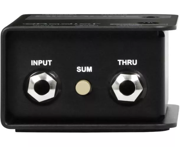 Bien que le Highline propose une sortie mono, il peut accepter deux signaux d'entrée et les additionner. Cela permet de connecter les sorties gauche et droite d'un modélisateur d'amplificateur stéréo au Highline. L'activation du commutateur « Sum » reconfigure la prise Thru en une deuxième connexion d'entrée et ajoute un circuit de mixage résistif passif. Ainsi, vous pouvez connecter la deuxième sortie de votre appareil source à la prise Thru via un câble TS ou TRS de 6,35 mm.