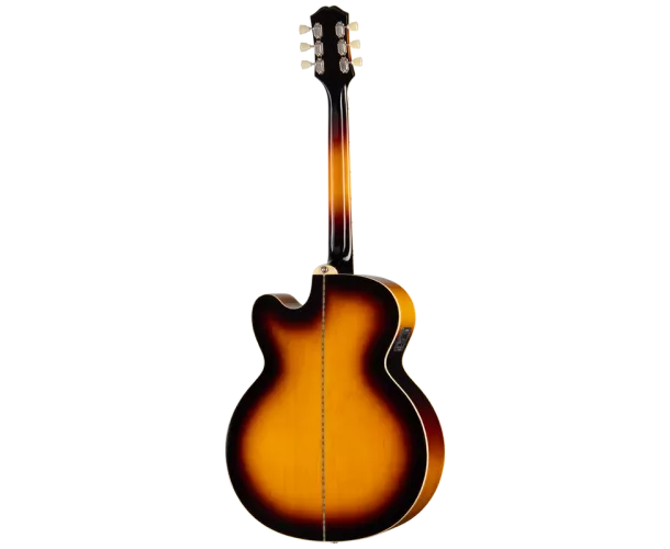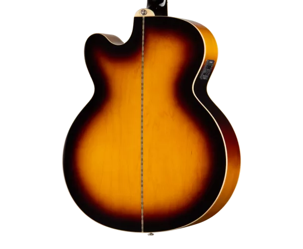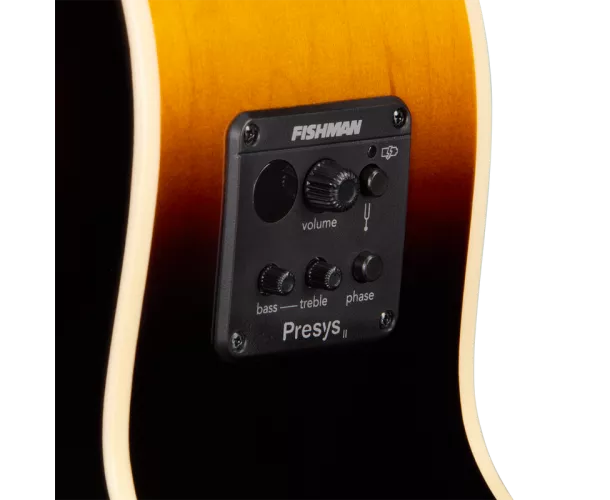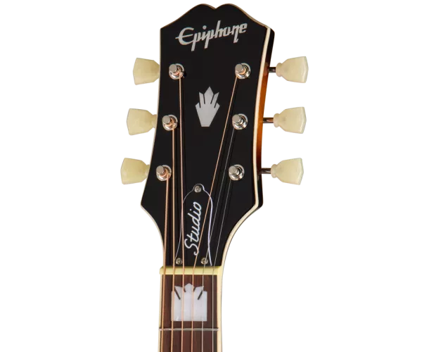 Nous avons également intégré à la J-200 Studio EC d’autres caractéristiques contribuant à renforcer son look vintage, parmi lesquels l’emblématique pickguard de style J-200 couleur écaille de tortue arborant le motif J-200 bicolore classique, des mécaniques Epiphone Deluxe à boutons Keystone, et une tête de style 60S Kalamazoo munie de filets et affichant fièrement le logo Epiphone et la couronne Gibson dans une incrustation en nacre. La J-200 Studio EC est équipée d’une électronique Fishman® comprenant un micro S-Core placé sous le sillet et un préampli Fishman Presys™ II dont les contrôles de volume, basses, aigus et phase sont accessibles sur l’éclisse. Elle présente également un accordeur électronique intégré, pratique pour un accordage rapide et facile. L’Epiphone J-200 Studio EC présente une finition brillante disponible dans deux coloris résolument vintage : Natural et Vintage Sunburst. Elle est disponible en versions pour droitiers et pour gauchers. Elle s’accompagne également d’une housse standard.