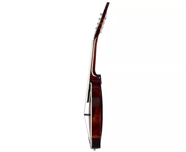 Orville Gibson a inventé la mandoline moderne, et les mandolines font partie de l'ADN d'Epiphone depuis ses débuts. Le premier brevet du fondateur de l'entreprise, Anastasios Stathopoulo, déposé en 1909, concernait une mandoline. Le maître luthier de Gibson, Lloyd Loar, a conçu la mandoline F-5 originale au début des années 1920, dont le succès a conduit à la création de nouveaux genres musicaux, tels que le bluegrass. Aujourd'hui, Epiphone a collaboré avec le Gibson Custom Shop pour créer la nouvelle F-5G, une reconstitution fidèle de l'original vénéré. Ce modèle dispose d'une construction en bois massif avec un dos et des éclisses en érable figuré, ainsi qu'une table en épicéa Sitka massif. Le manche en érable figuré possède une touche en ébène avec un radius composite (10” au sillet, 12” à l'extrémité de la touche) et une tête de manche en forme de F, dotée de mécaniques de style vintage avec des boutons en nacre. Les finitions incluent le binding en trois plis, les incrustations de la tête en nacre « L'Epiphone » et de fleur en pot, ainsi qu'une riche finition Cremona Sunburst. Que vous jouiez des accords rythmiques ou des lignes mélodiques, son ton est équilibré, profond et résonnant, avec une grande puissance de projection. Un étui rigide de style vintage est également inclus.