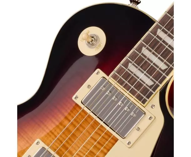 Epiphone Les Paul Standard 50s, Bourbon Burst, Exclusive incarne l'esprit des Les Paul classiques avec un timbre chaleureux et un sustain généreux, tout en offrant un confort de jeu adapté à la scène comme au studio pour une large palette de styles.