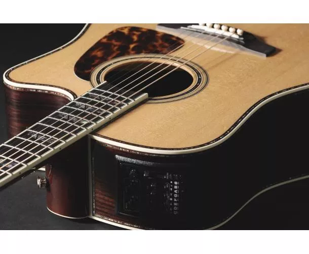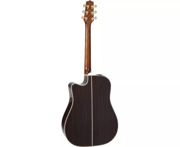 Takamine propose une acoustique conçue pour le musicien exigeant : une table massive pour une réponse dynamique, des éclisses en palissandre pour des graves riches et un manche confortable en acajou pour jouer longtemps. Le pan coupé facilite l'accès aux aigus tandis que la touche en ébène assure précision et tenue d'accord.
