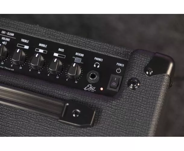 Ampli pensé pour la polyvalence : sortie claire et saturation accessibles via deux canaux distincts, reverb intégrée et boucle d'effets pour insérer vos pédales sans perte de dynamique. Finition noire sobre, construction légère et commandes simples facilitent le réglage rapide en répétition comme sur scène.