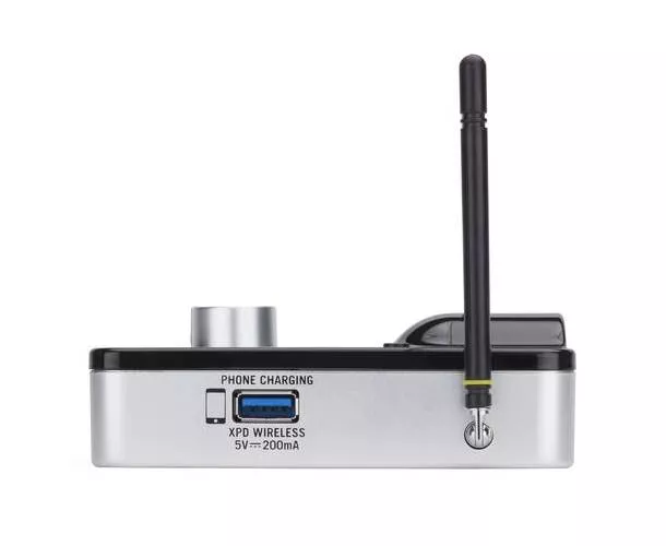 - Port USB : charge de l’émetteur, charge d’un téléphone, extension possible avec un récepteur Samson XPD pour un second émetteur