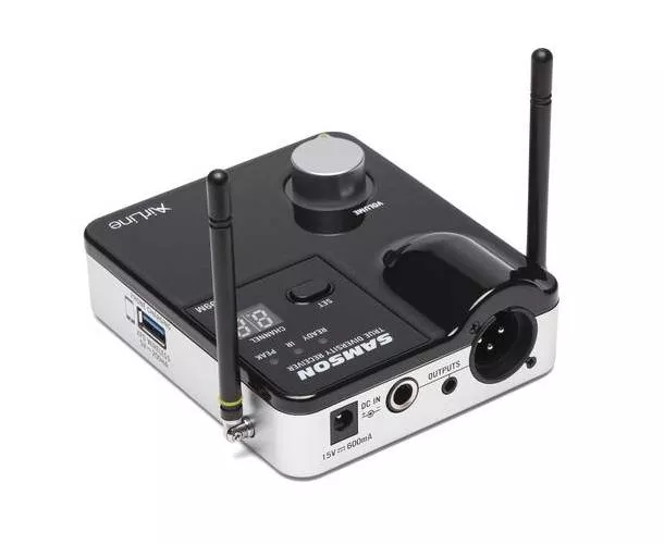 - Port USB pour recharger l’émetteur ou un téléphone, et ajout possible d’un casque Samson XPD (système double émetteur)