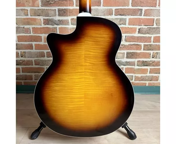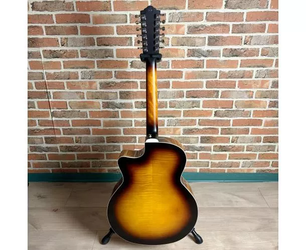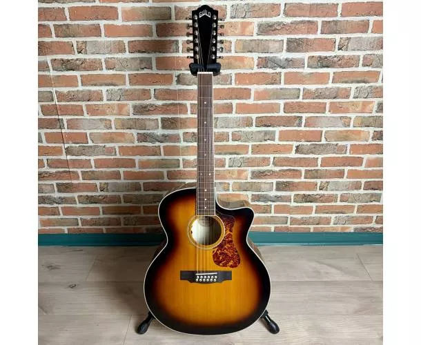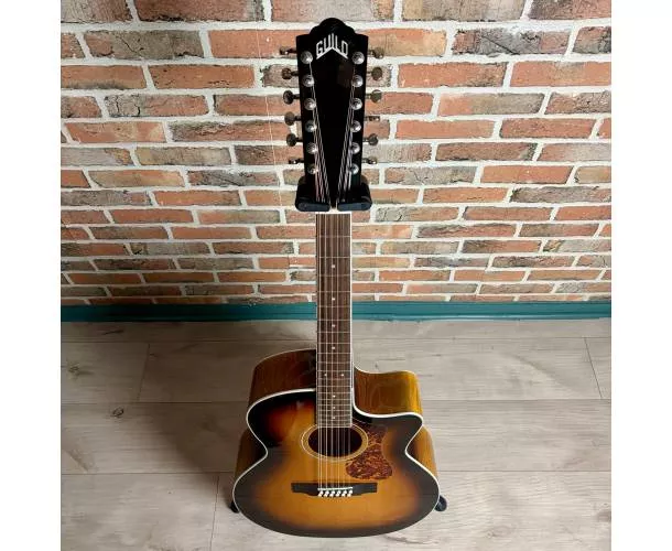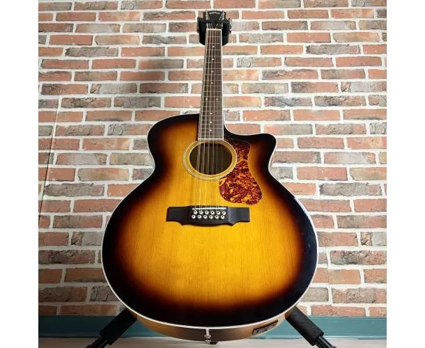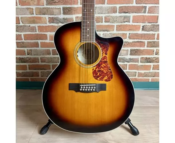 La Guild F-2512CE Deluxe est une guitare folk électro-acoustique 12 cordes au format jumbo pan coupé, conçue pour offrir un son ample, riche et détaillé. Grâce à sa table en épicéa Sitka massif et son dos en érable laminé à structure Archback, elle délivre une projection impressionnante avec des aigus brillants et des basses bien définies. Son manche Slim C assure un confort de jeu optimal malgré la configuration 12 cordes, tandis que le système Guild AP-1 permet une amplification simple et efficace, directement via les réglages intégrés dans la rosace. Idéale pour accompagner, enrichir un mix ou créer des textures larges et immersives.