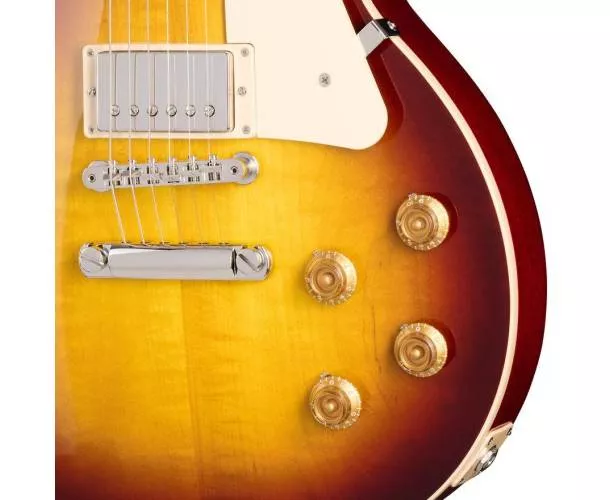 Côté son, les BurstBucker 1 & 2 (Alnico 2) délivrent des textures PAF authentiques, du clean ouvert au drive épais, avec moins de bruit qu’un simple bobinage. L’électronique câblée à la main, l’accastillage ABR-1/Stop Bar et l’étui rigide inclus en font une Les Paul prête pour la scène et le studio.