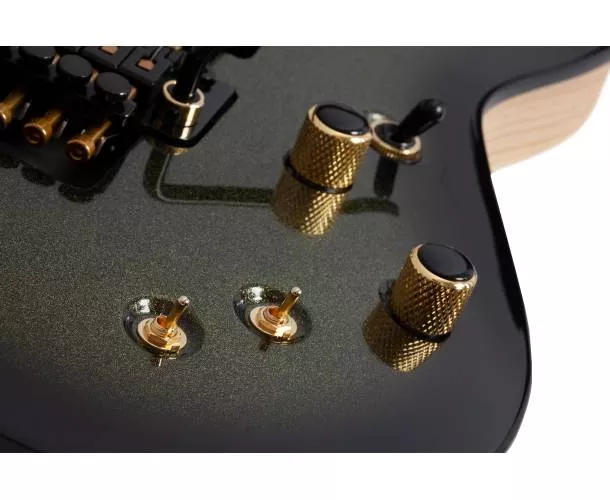 Côté son, l’association du humbucker Sunset Strip Anniversary Edition au chevalet et du Sustainiac en position manche ouvre un large éventail : attaques tranchantes, gros niveaux de gain, et sustain contrôlable via ses modes dédiés. Le Floyd Rose double blocage complète l’ensemble pour les vibratos appuyés sans compromettre l’accordage.