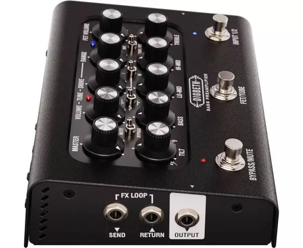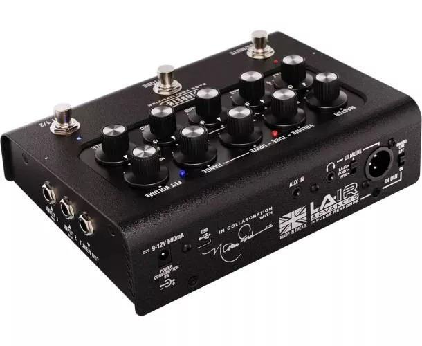 Pensé pour les bassistes qui alternent les instruments, il propose deux entrées sélectionnables avec ajustement de niveau, une DI flexible avec émulation de baffle LA-IR, ainsi qu’une connectivité USB-C pour l’enregistrement direct et la gestion des IR via l’application dédiée. Le tout est complété par une section d’égalisation très musicale, une boucle d’effets et des sorties pratiques pour le jeu au casque, l’accordage et l’amplification.