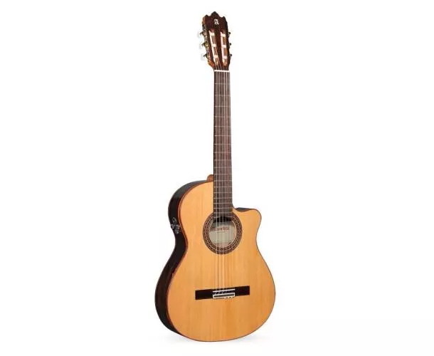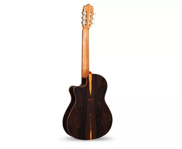 L’Alhambra Iberia Ziricote CTW E8 est une électro-acoustique à pan coupé pensée pour offrir un jeu confortable et un son riche, avec une excellente définition. Sa construction associe une table en cèdre massif à un corps en ziricote, pour une réponse équilibrée et une belle profondeur, aussi bien en fingerstyle qu’au médiator.