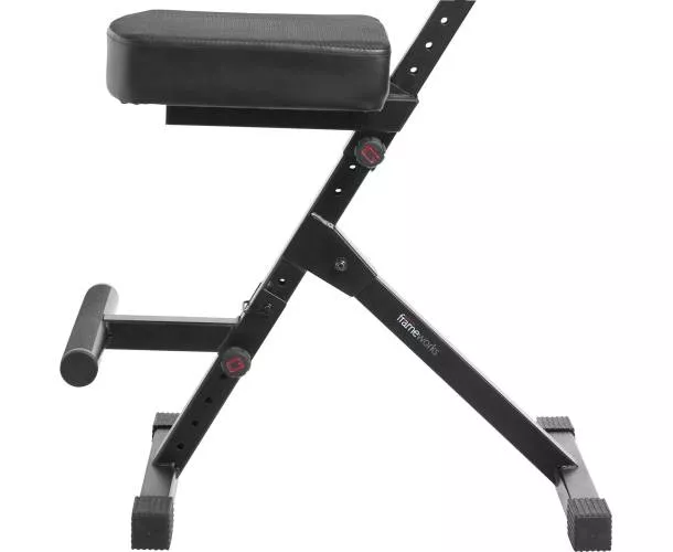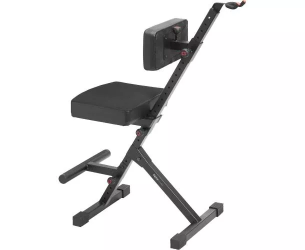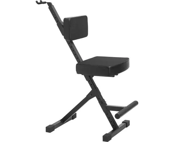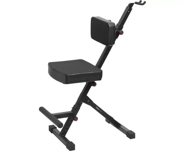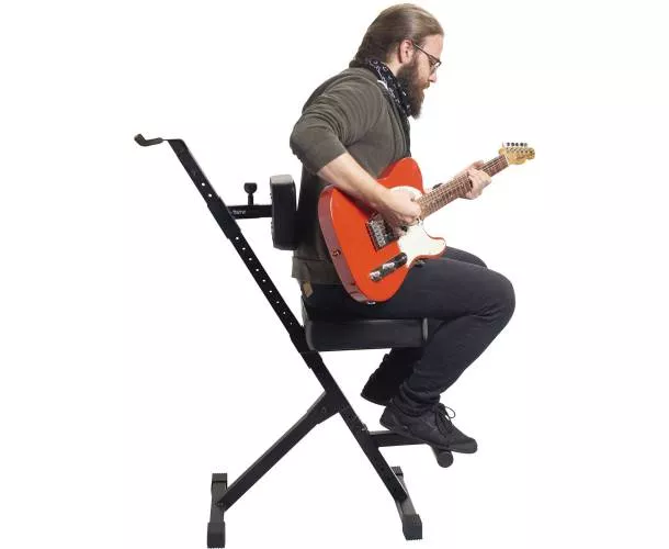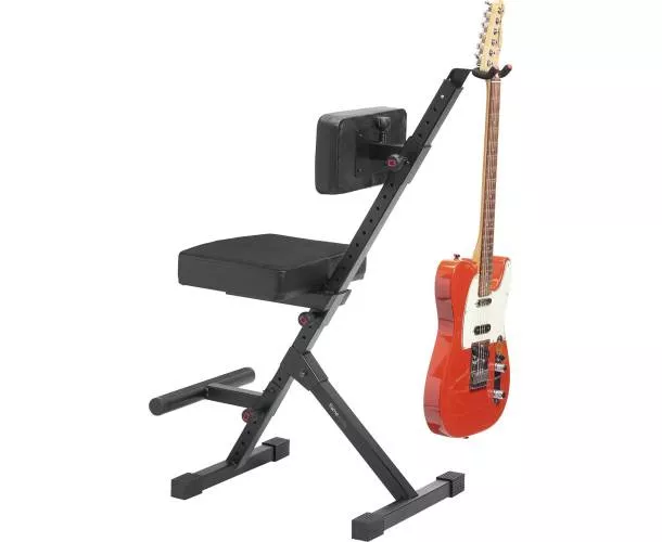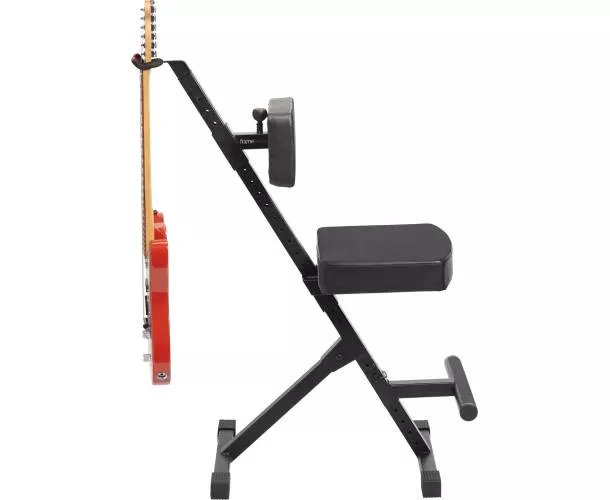 Siège de guitariste de luxe avec système de réglage en hauteur à 3 points et support arrière pour guitare.