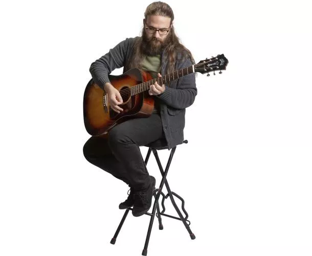 Le tabouret pour guitare et support simple combinés de Gator offrent un siège confortable pour les guitaristes en concert et éliminent le besoin d’un support de guitare séparé sur scène. Le coussin de siège de 2,5" d'épaisseur et le repose-pieds intégré vous permettent d'atteindre un confort optimal pendant vos performances.
