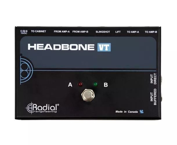 Le Radial Engineering Headbone VT est un sélecteur d’ampli conçu pour permettre à deux têtes à lampes de partager un seul baffle, en passant de l’une à l’autre sans pops, clics ni bruits parasites. Idéal en studio comme sur scène, il évite de multiplier les enceintes tout en gardant un routage propre et musical.