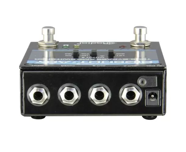 Pour éviter les soucis courants en configuration double ampli, il intègre des outils efficaces contre les bruits et les problèmes de phase : transformateur d’isolation sur la sortie B, interrupteur de masse et inverseur de polarité. Une sortie accordeur toujours active complète l’ensemble pour garder un accordage fiable sans perturber le signal principal.