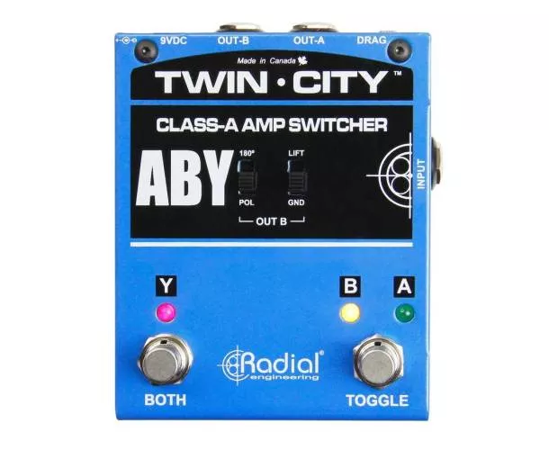 La Radial Engineering Twin-City est une pédale ABY pensée pour exploiter deux amplis (ou deux chaînes) en toute transparence : A, B ou A+B, avec un signal qui reste solide et musical. Son buffer actif et le Drag Control permettent d’ajuster l’impédance pour retrouver la sensation et la réponse naturelle de votre instrument, sans perte ni dureté.