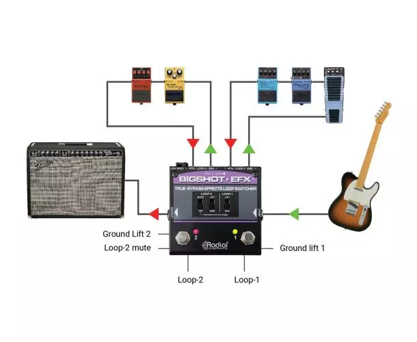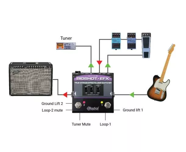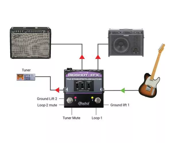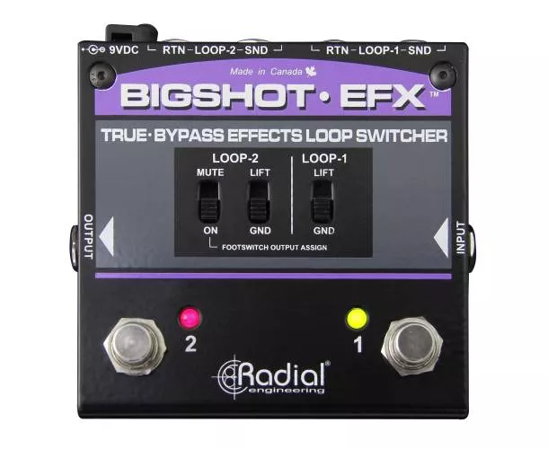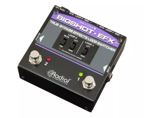 Le Radial Engineering BigShot EFX est un sélecteur à 2 boucles d’effets conçu pour garder votre son intact grâce à un chemin true bypass : vos pédales sont totalement retirées du signal quand elles ne sont pas actives. Idéal pour contourner les effets au bypass imparfait, limiter la perte d’aigus, et réduire les bruits parasites liés à certaines chaînes de pédales.