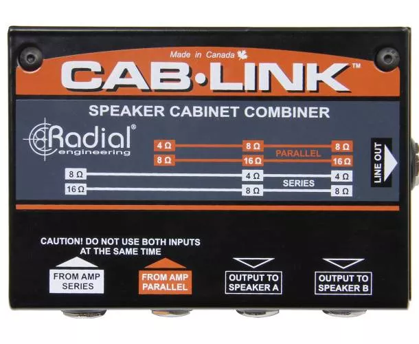 Le Radial Engineering Cab-Link est un boîtier passif pensé pour brancher facilement deux enceintes sur une tête d’ampli via une seule entrée. Vous connectez vos baffles aux sorties, puis l’ampli à l’entrée « série » ou « parallèle » : le Cab-Link adapte automatiquement le câblage en fonction de l’entrée utilisée, pour gagner du temps et éviter les erreurs de configuration.