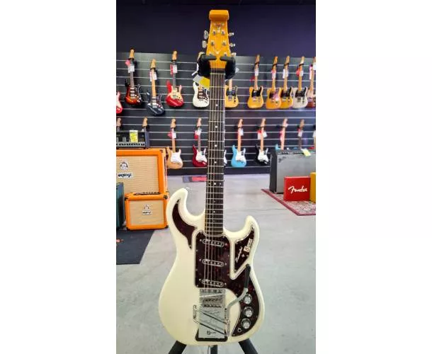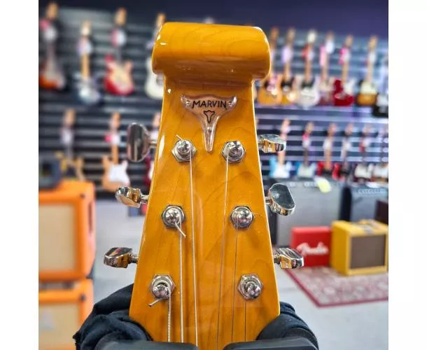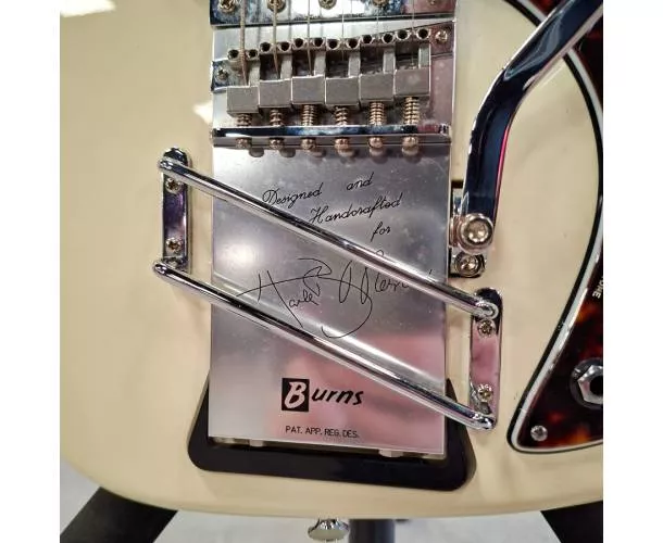 Produit d’occasion en bon état (env. 8/10), cette Burns London rend hommage à la Marvin de 1964 avec une approche très respectueuse de l’original, pensée pour les sons claquants et brillants à la Hank Marvin. Fabriquée en Chine et assemblée au Royaume-Uni, elle offre une prise en main confortable et une excellente résonance, idéale autant pour le jeu au médiator que pour les bends.