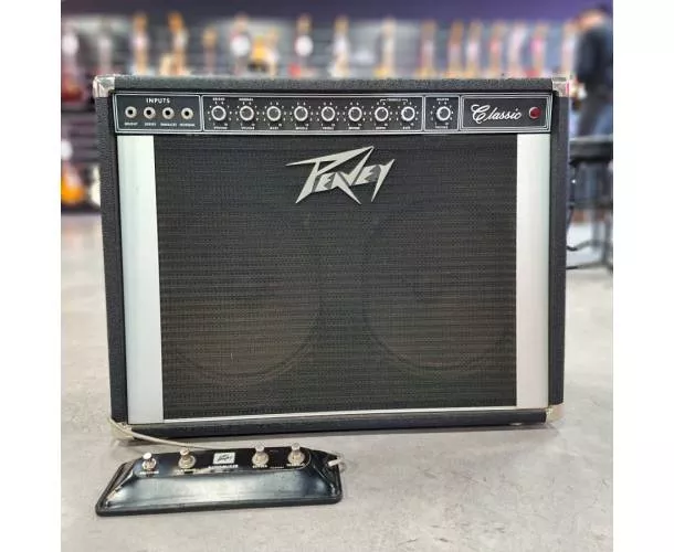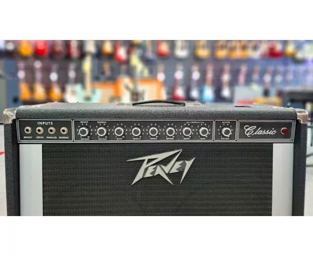 Ce Peavey Classic 212 fabriqué aux USA (années 70) est un ampli d’occasion en dépôt-vente, proposé en bon état. Sa conception hybride mêle préampli à transistors et puissance à lampes pour une réponse nerveuse, idéale pour les sons clairs dynamiques comme pour des crunchs vintage à fort caractère, avec une vraie présence grâce au format 2x12.