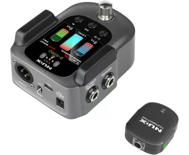Le Nux B-11 Pro est un système sans-fil complet 2,4 GHz pensé pour le violon et l’alto, avec un récepteur au format pédale pour une intégration simple sur pedalboard ou au pied de scène. L’émetteur se fixe rapidement et le micro statique cardioïde restitue un son naturel et précis, idéal pour le live comme pour les répétitions, sans les contraintes d’un câble.