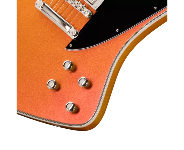 Avec la Firebird Custom Futura Firestorm Shift, Epiphone revisite une silhouette mythique avec une approche clairement actuelle. Sa finition Chromashift accroche la lumière et change de teinte selon l’angle, idéale pour se démarquer sur scène comme en vidéo, tout en conservant une esthétique premium grâce aux filets et aux détails soignés.