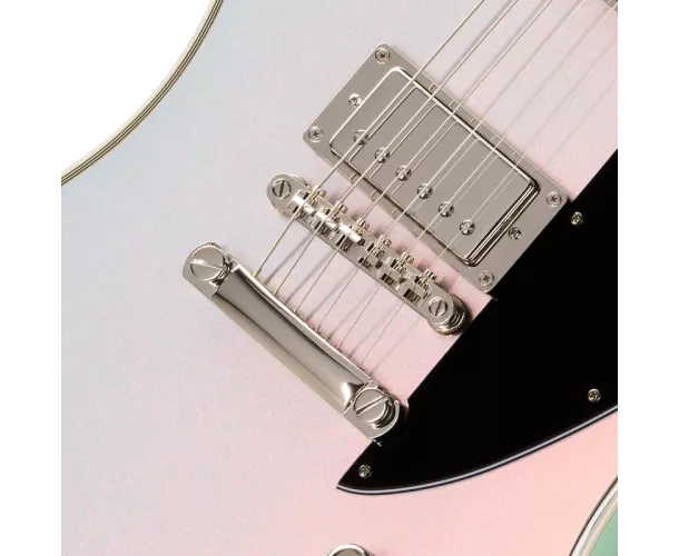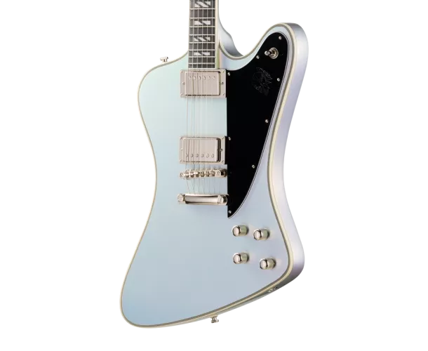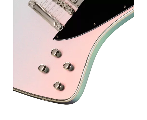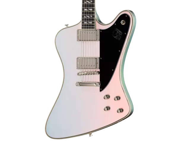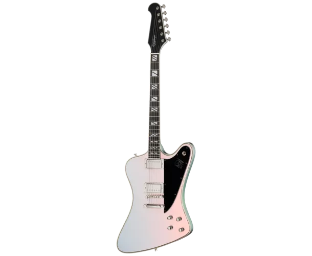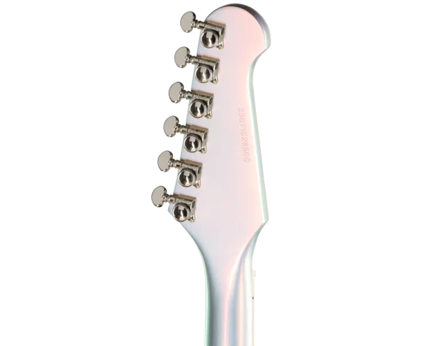 Avec la Firebird Custom Futura quicksilver Shift, Epiphone revisite une silhouette mythique avec une approche clairement actuelle. Sa finition Chromashift accroche la lumière et change de teinte selon l’angle, idéale pour se démarquer sur scène comme en vidéo, tout en conservant une esthétique premium grâce aux filets et aux détails soignés.