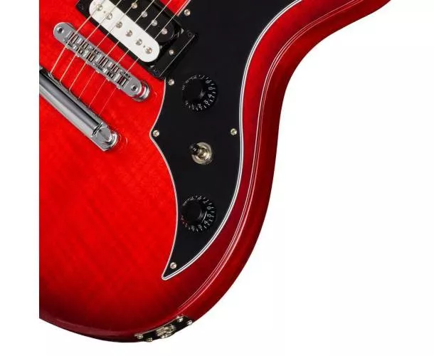 Recréée à la demande des guitaristes, la Gibson Victory Figured Top combine le caractère « cult » des modèles originaux avec des améliorations bienvenues pour le jeu moderne : ergonomie revue, meilleur équilibre et une jouabilité rapide pensée pour les techniques actuelles. Sa table en érable flammé AA attire immédiatement l’œil en finition Cherry Burst, tout en ajoutant une attaque plus précise aux graves chaleureux de l’acajou.