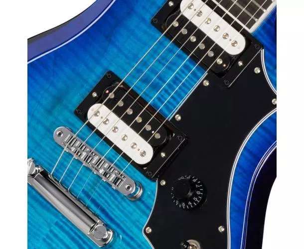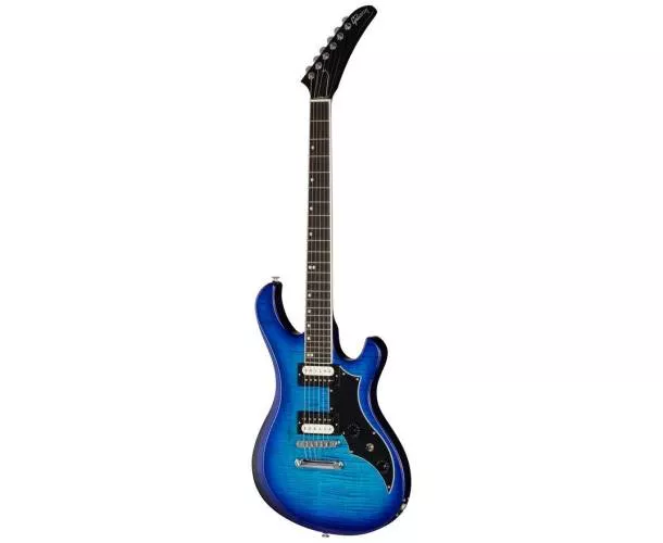 La Gibson Victory Figured Top en finition Cobalt Burst fait revivre une silhouette emblématique des années 80 avec des améliorations pensées pour les guitaristes d’aujourd’hui : meilleure ergonomie, équilibre optimisé et une prise en main rapide. Son esthétique est mise en valeur par une table en érable figuré AA et un vernis nitro brillant, pour un instrument aussi expressif visuellement que musicalement.