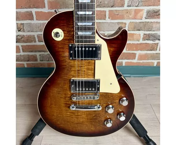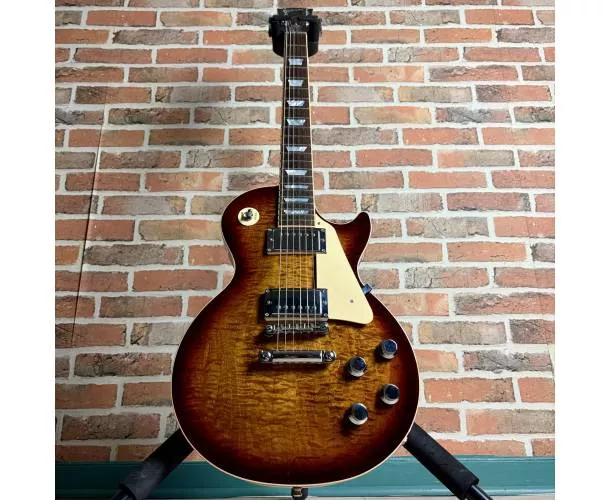 Une Les Paul moderne et ultra polyvalente issue de la série High Performance de 2017, combinant le look emblématique Gibson avec des améliorations techniques avancées. Avec sa magnifique table en érable AAAA, ses micros Burstbucker Pro et son électronique complète à switchs DIP et push/pull, elle offre une palette sonore extrêmement large, du clean précis au lead saturé puissant. C'est une guitare très polyvalente et confortable qui allie vintage et modernité pour pouvoir jouer dans toutes les meilleurs conditions.