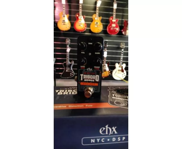 Cette Electro-Harmonix Triboro Bridge est une pédale de saturation polyvalente réunissant overdrive, distortion et fuzz, idéale pour passer d’un crunch dynamique à des textures plus extrêmes sans changer de pédale. Le mode fuzz ajoute un caractère plus radical grâce à une gate intégrée et un filtre passe-bas, pratique pour sculpter des sons modernes et bien contrôlés.