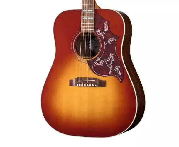 Fabriquée à la main à Bozeman (Montana), cette Gibson Hummingbird Studio Rosewood modernise l’esprit Hummingbird avec une table en épicéa de Sitka en vernis nitrocellulosique brillant et un dos/éclisses en palissandre pour une réponse plus ample. Le résultat : un registre grave plus riche, des aigus plus scintillants et une projection généreuse, idéale en accompagnement comme en jeu au médiator.