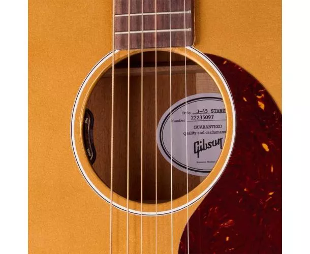 La Gibson J-45 Standard en finition Goldtop reprend l’esprit « Workhorse » qui a fait sa réputation : une acoustique expressive, avec un équilibre naturel et une projection généreuse, idéale autant en strumming qu’en jeu plus nuancé. Sa lutherie en bois massifs et sa finition nitrocellulose brillante lui donnent une réponse vivante et un toucher très organique.
