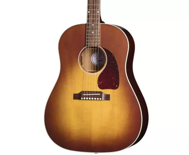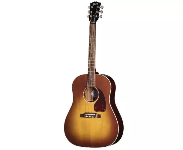 Fabriquée à la main à Bozeman (Montana), cette Gibson J-45 dans sa livrée Honey Burst VOS conserve tout ce qui fait le charme du modèle : une réponse chaleureuse, un bas solide et un médium présent qui porte aussi bien en strumming qu’en jeu au médiator. L’association épicéa de Sitka/acajou et le barrage en X traditionnel sculpté à la main donnent un caractère punchy et ouvert, avec une belle projection.